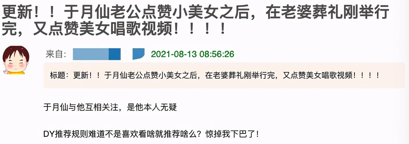 没想到于月仙才刚刚去世,张学松就点赞美女,这件事令人吃惊不已。直到现在仍有不少人在评论里提出了质疑,警告张学松不要做对不起妻子的事。