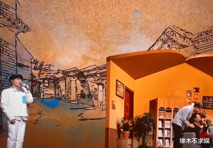 在温情的舞台上,李光复、孙桂田在小屋中上演剧情,周深则在一旁歌唱,氛围感十足。不过有意思的是周深好像被门“夹”了。