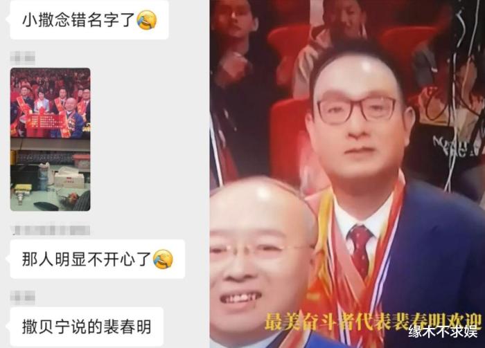 其中一位楷模名叫裴春亮,撒贝宁却口误说成了裴春明,这个失误让网友十分震惊,楷模的脸上也十分尴尬。